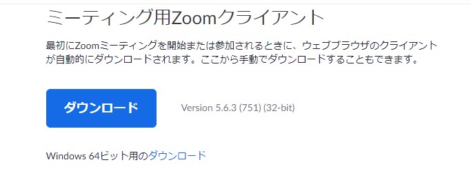 下のURLをクリックして「ミーティング用Zoomクライアント」をダウンロードして、
